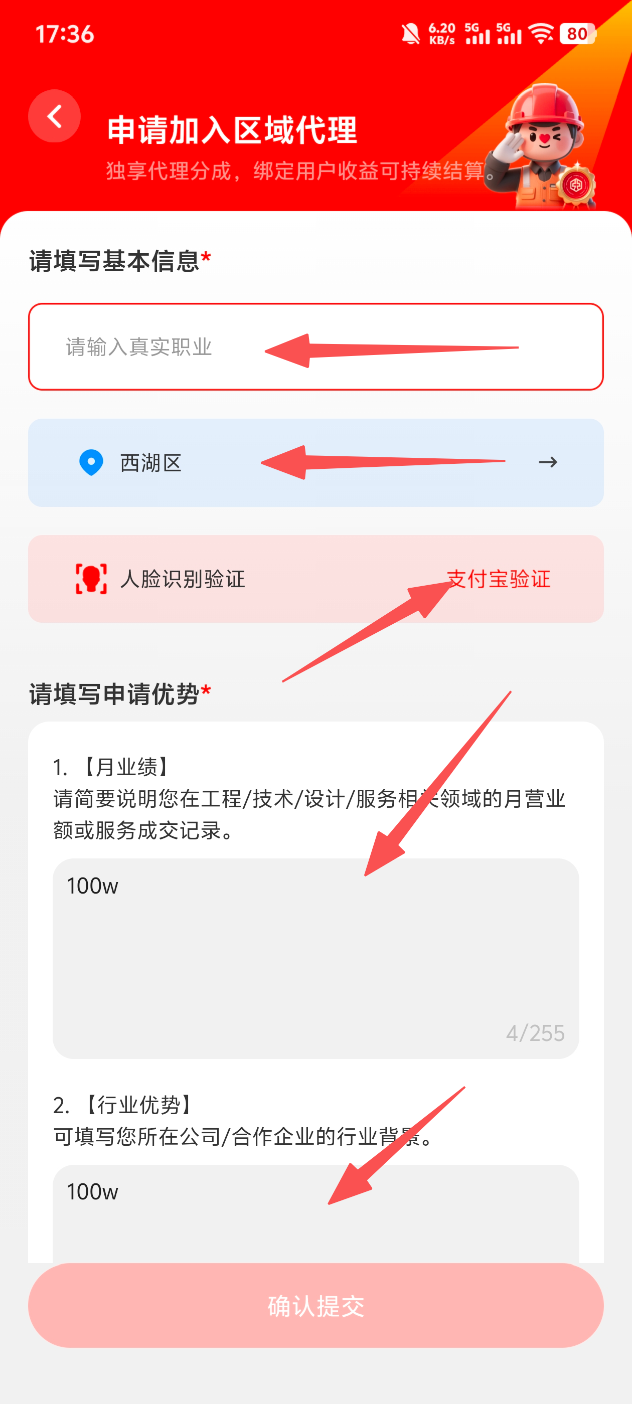 申请优势。 - 确认信息无误后提交。