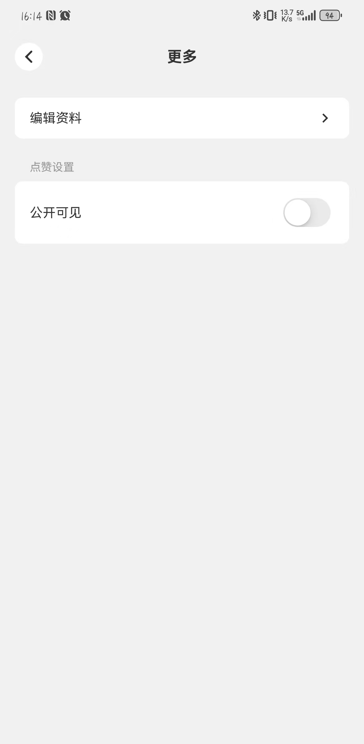 用户主页入口位于会赚界面左上角头像区域,点击即可进入会赚主页。右上角功能从左到右依次排布为已购买资源管理、主页分享、更多设置。更多设置中可选择点赞列表是否公开可见或仅个人可见。