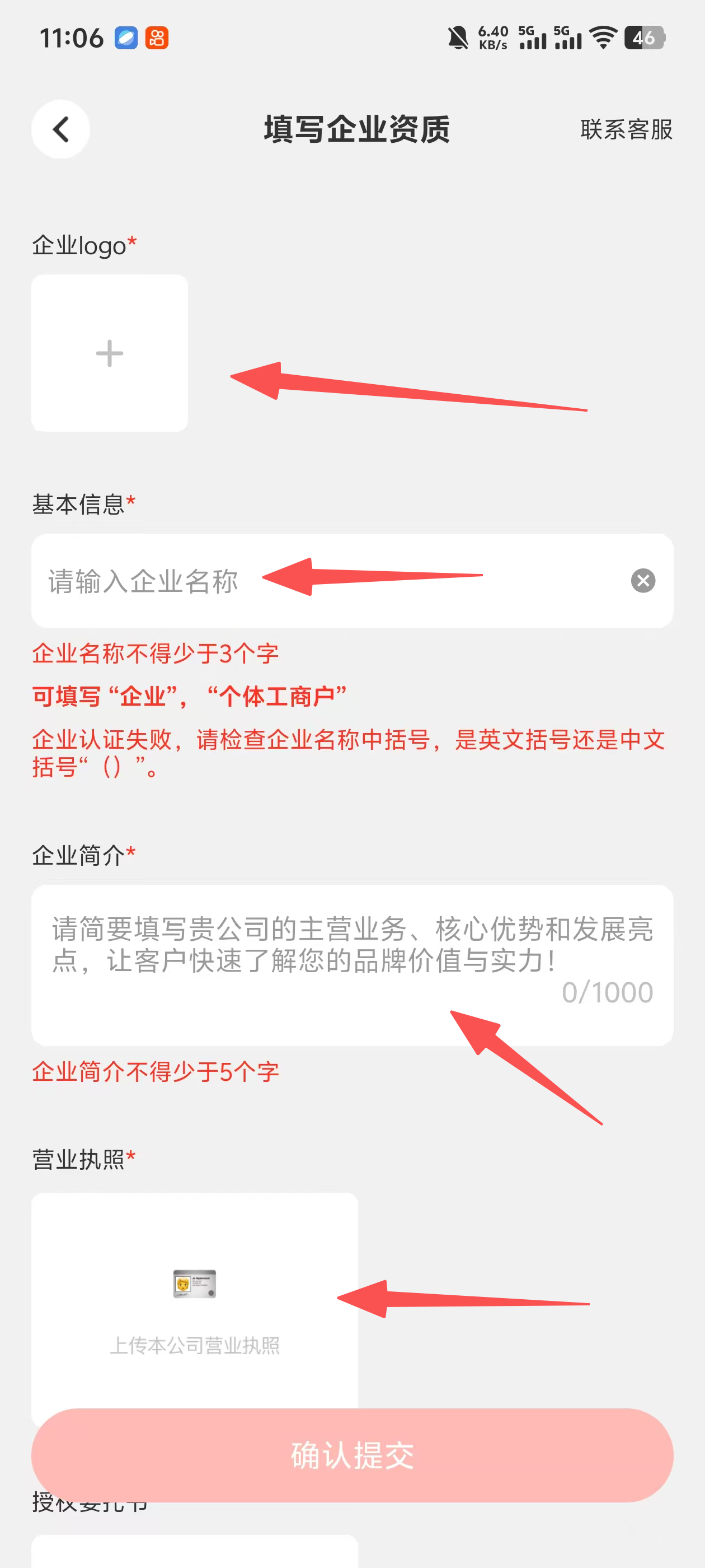填写企业资质后确认提交等待后台审核通过后即可成为企业认证用户。