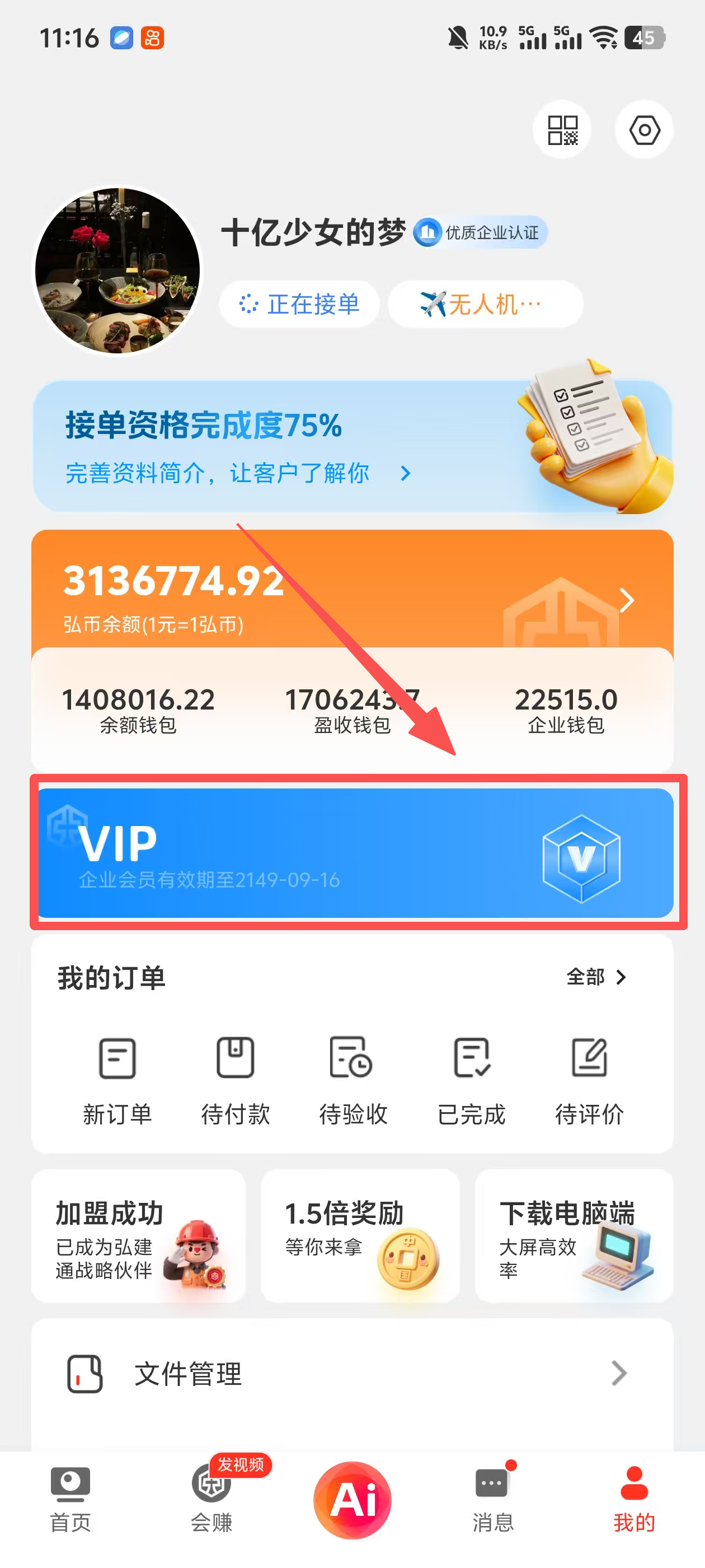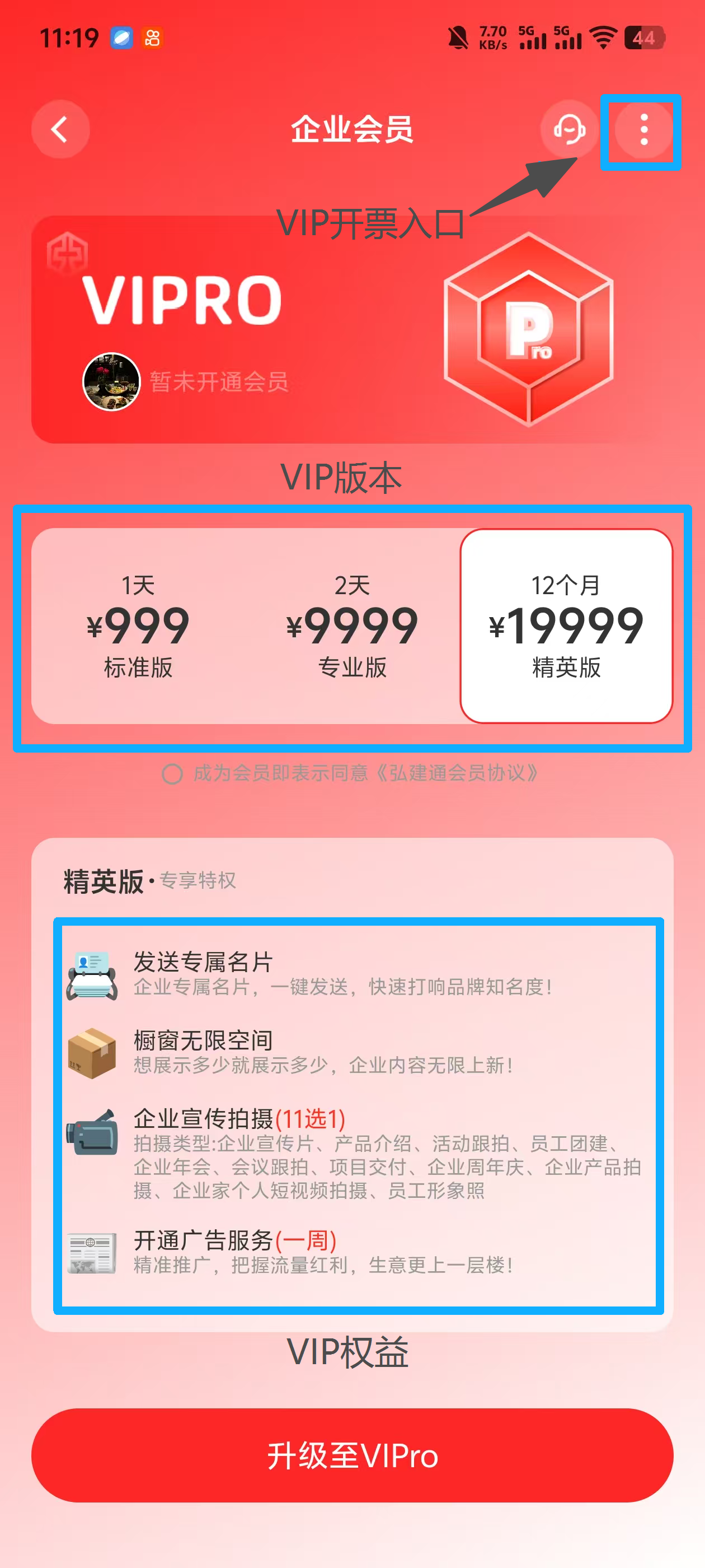 1.企业VIP入口将在企业认证通过后自动显示,点击进入即可开通。