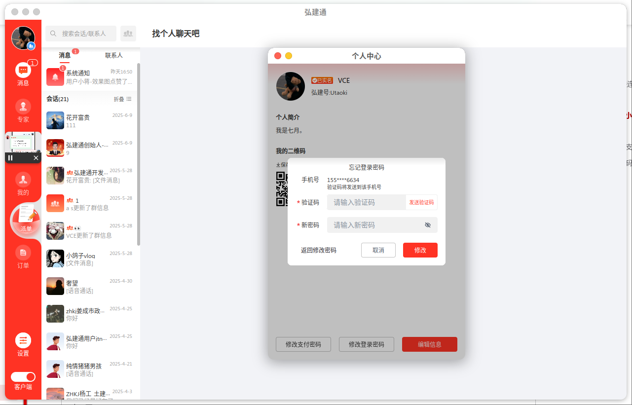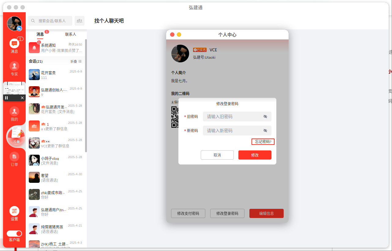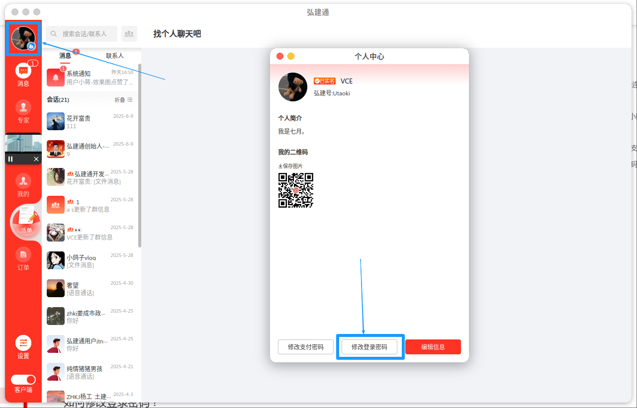 点击头像位置,进入个人中心,点击下方修改登录密码,输入新登录密码并确认即可。如您不知道或忘记了登录密码,可点击弹窗右侧忘记密码,通过手机验证码修改登录密码。
